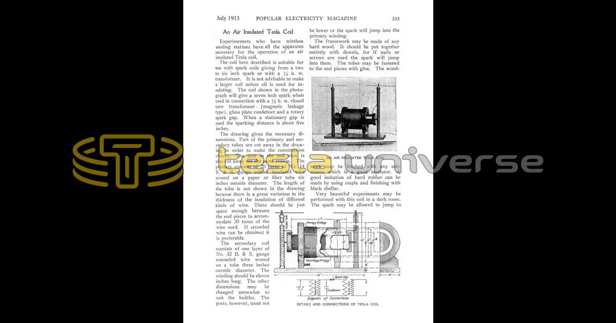 Experimenters who have wireless sending stations have all the apparatus necessary for the operation of an air insulated Tesla coil.