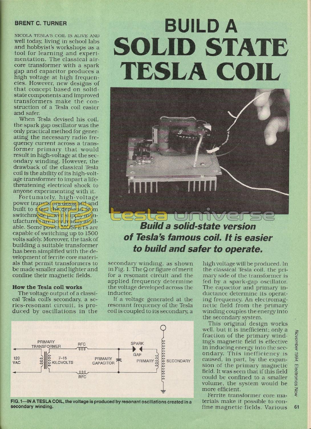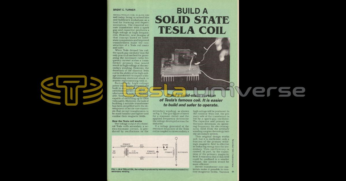 Build a solid-state version of Tesla's famous coil. It is easier to build and safer to operate.
