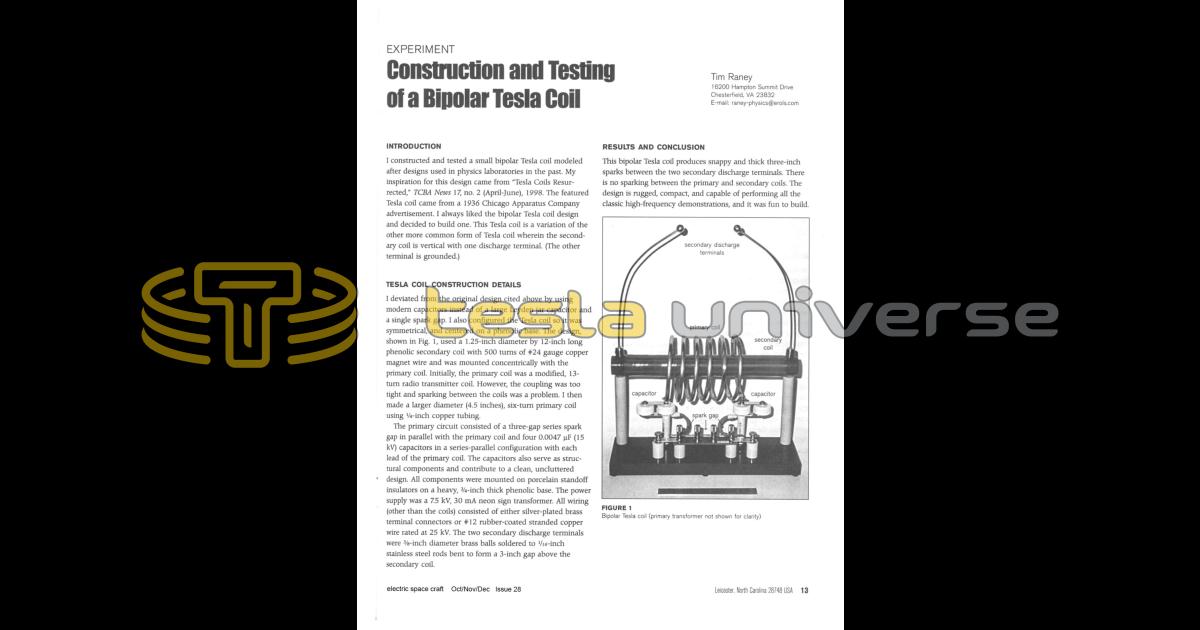 Construction and Testing of a Bipolar Tesla Coil