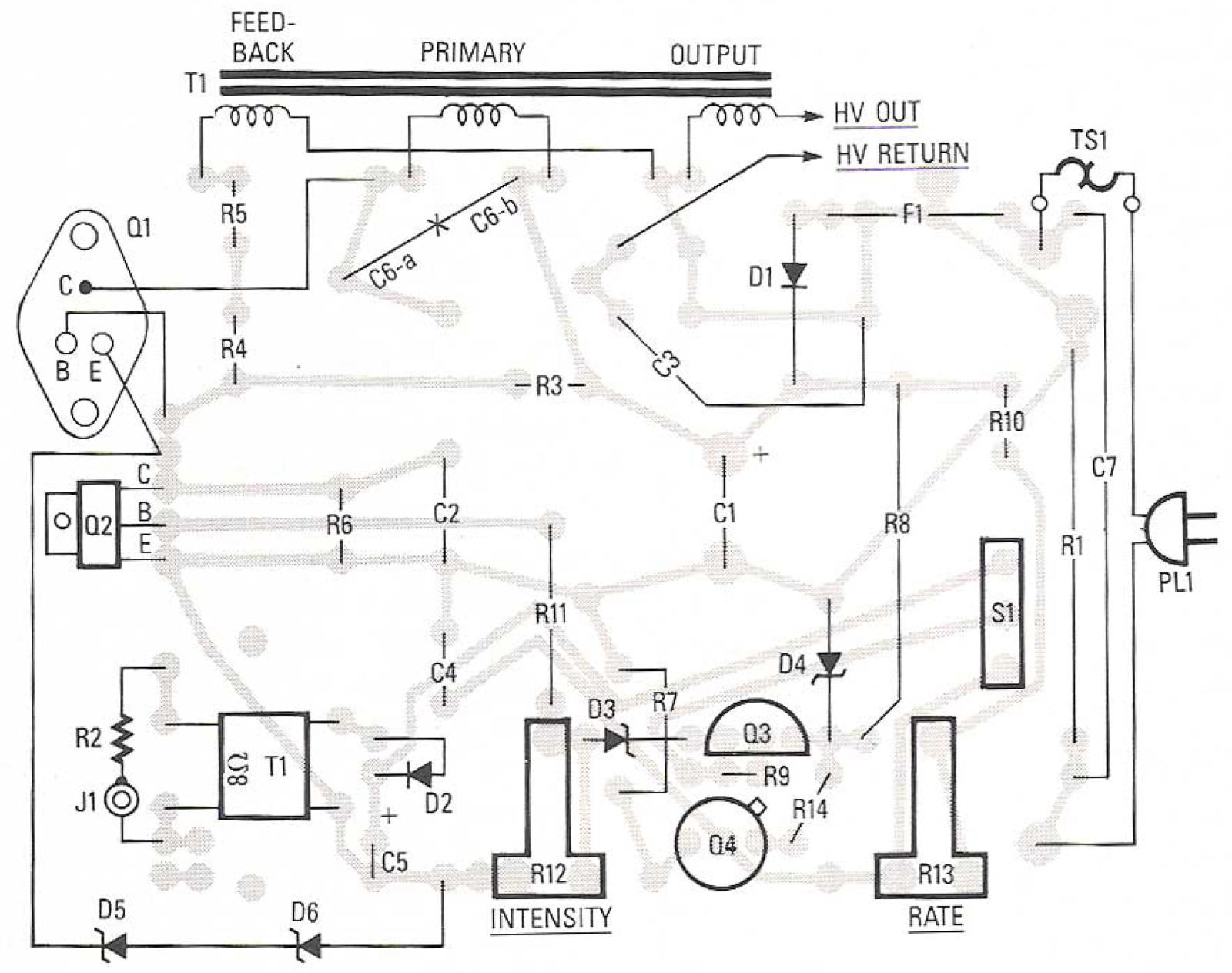 Note: The following parts are available from: Information Unlimited, PO Box 716, Amherst, NH 03031: An etched and drilled PC board ($5.50): Transformer T1 ($29.50): 0.01 uF, 1 kV, polypropylene capacitor ($2 each): A complete kit containing T1 and ail other components as well as the enclosure ($59.50). Add 5% of the total order for for postage and handling.