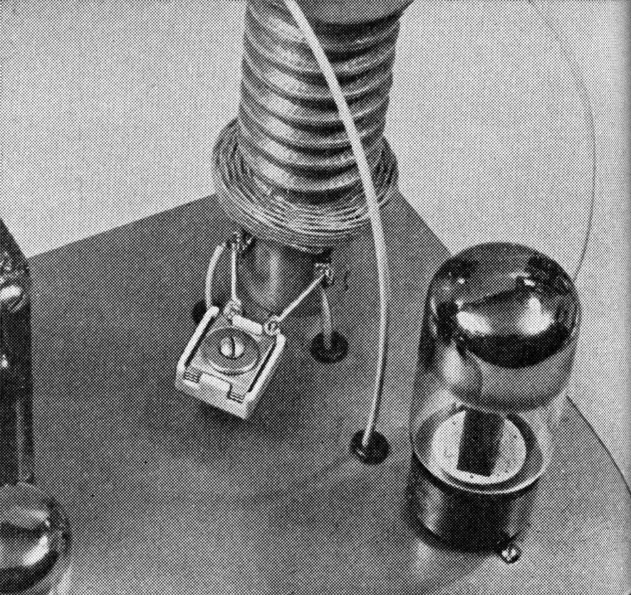 Capacitor C3 is used to tune the primary of the h.v. coil. For convenience, two bus-bar leads about 1" in length were soldered to the capacitor and used to support it in mid-air. The remaining components are scattered around below the chassis deck.