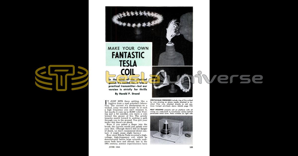 Ever since Nikola Tesla invented a high-voltage, high-frequency coil, which he demonstrated before large scientific audiences both here and abroad, late in the 19th century, science experimenters have been intrigued with their own variations on his coil. In Tesla's time, high-frequency current was obtained with an induction coil as a primary source of power and Leyden jars serving as capacitors, with a spark gap and the inductance of a second coil combining to form an oscillatory discharge of high frequency. With today's vacuum tubes and mica capacitors, we can make a much more efficient coil - and one that's safer to use.