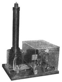 The coil uses only one oscillator tube which is enclosed with the other power-supply components in a transparent plastic housing for safety and as a showcase. The coil is mounted on a transparent plastic base with a clear plastic cylinder enclosing the primary section of the coil for protection from its high voltage (Fig. 2). Careful attention has been given to insulation of the coil and all wiring so that leakage has been reduced to a minimum.