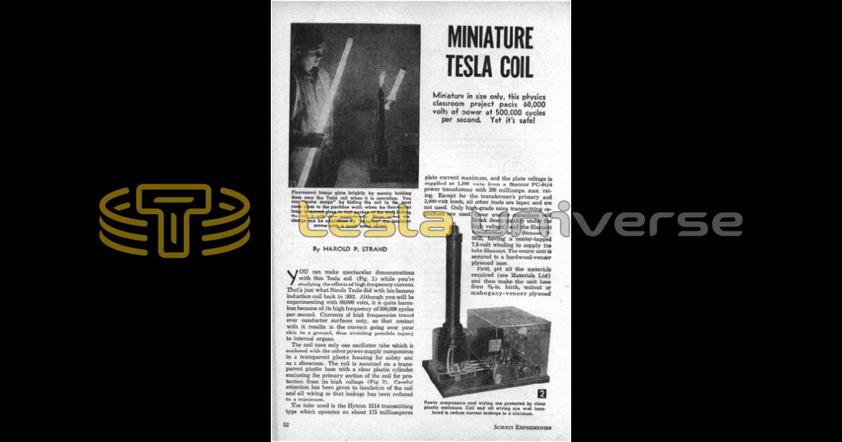 Miniature in size only, this physics classroom project packs 60,000 volts of power at 500,000 cycles per second. Yet it's safe!