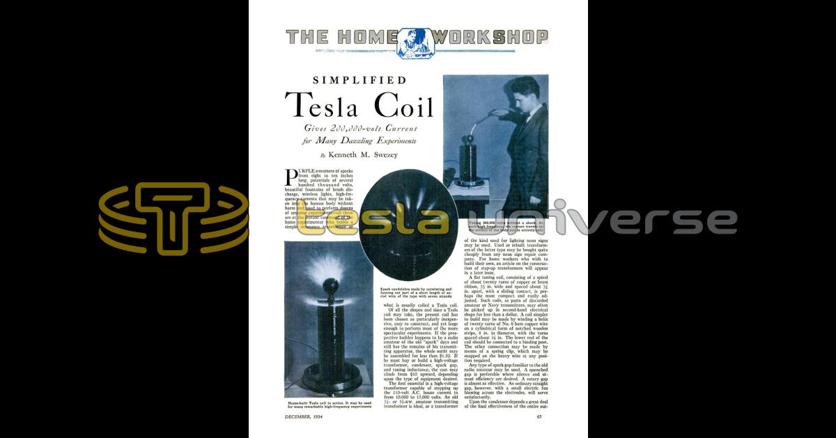Purple streamers of sparks from eight to ten inches long, potentials of several hundred thousand volts, beautiful fountains of brush discharge, wireless lights, high-frequency currents that may be taken into the human body without harm and used to perform dozens of amazing experiments — all these are at the instant command of the home experimenter who builds a simple resonance transformer or what is usually called a Tesla coil.