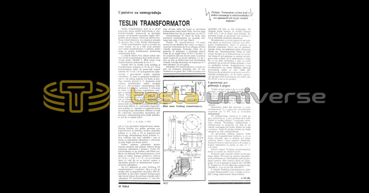 In the following text one typical Tesla transformer will be described which can produce over 200,000 V. The block diagram of this transformer is shown on sl. 1.