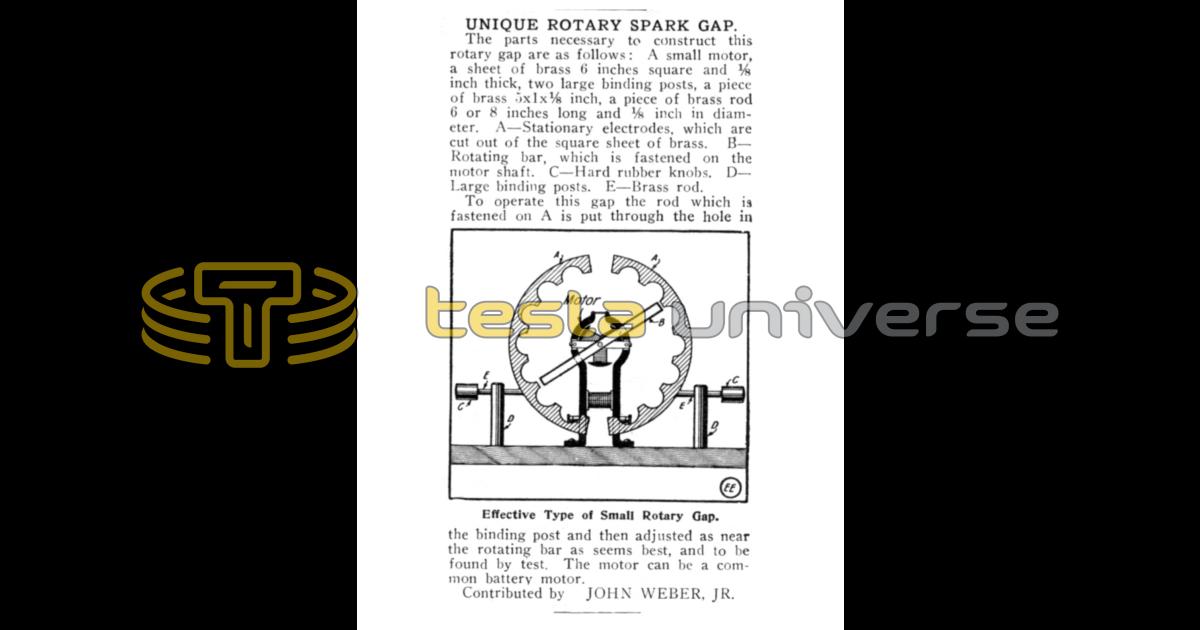 The parts necessary to construct this rotary gap are as follows: A small motor, a sheet of brass 6 inches square and 1/8 inch thick, two large binding posts, a piece of brass 5x1x1/8 inch, a piece of brass rod 6 or 8 inches long and 1/8 inch in diameter. A — Stationary electrodes, which are cut out of the square sheet of brass. B — Rotating bar, which is fastened on the motor shaft. C — Hard rubber knobs. D — Large binding posts. E — Brass rod. To operate this gap the rod which is fastened on A is put through the hole in the binding post and then adjusted as near the rotating bar as seems best, and to be found by test. The motor can be a common battery motor.