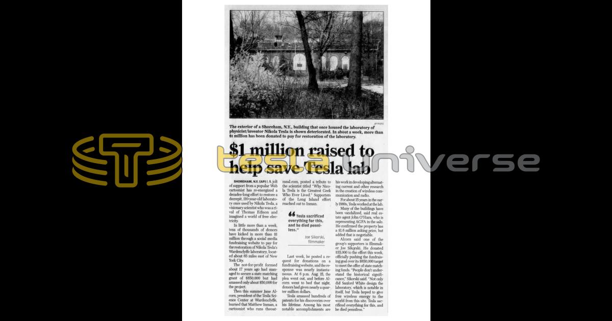 $1 Million Raised to Help Save Tesla Lab
