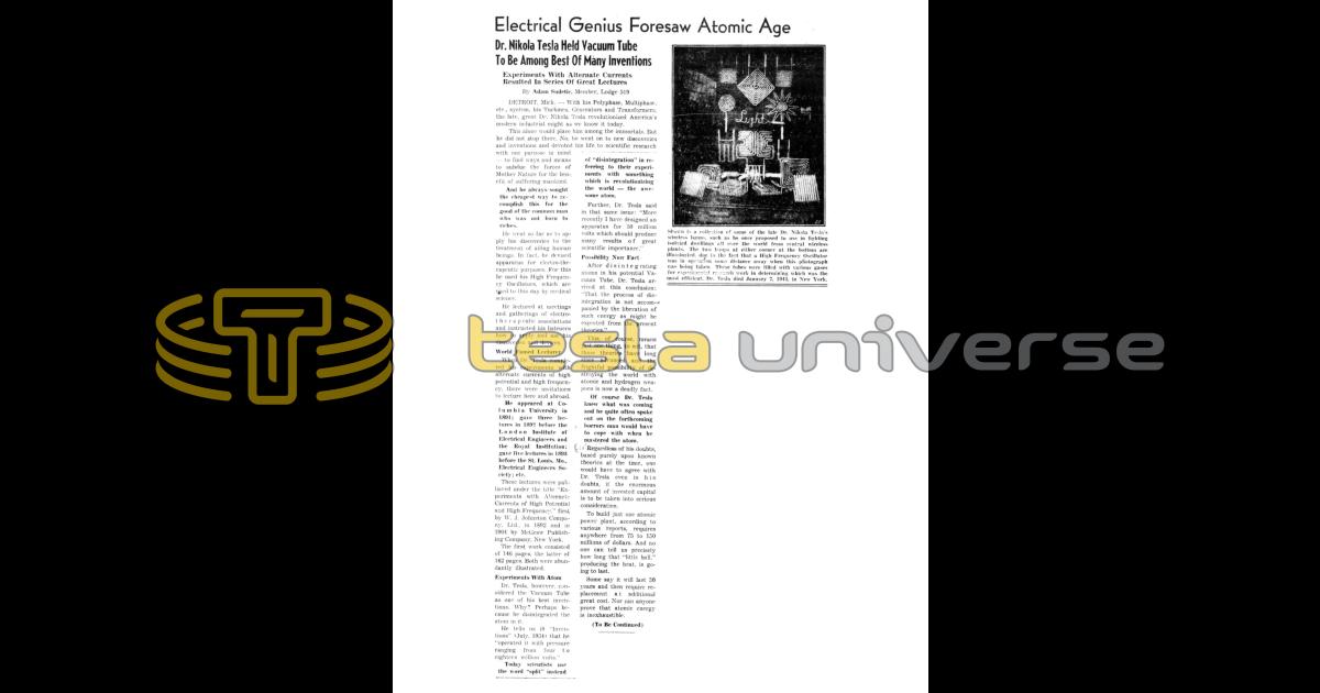 Electrical Genius Foresaw Atomic Age
