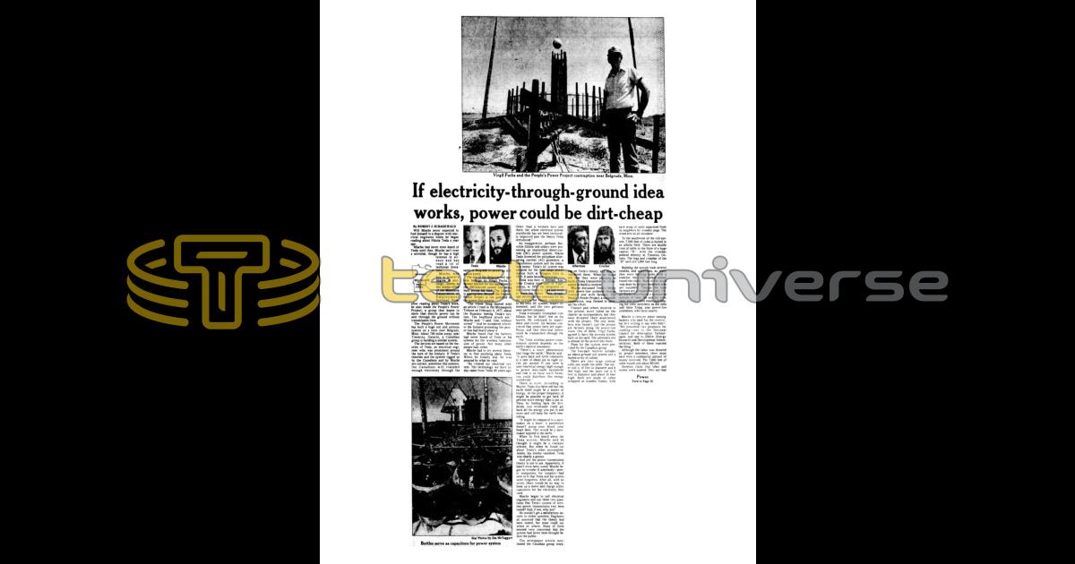 The devices are based on the theories of Tesla, an electrical engineer who was prominent around the turn of the century. If Tesla's theories and the system rigged up by the Canadians and by Mische are correct, sometime this summer, the Canadians will transmit enough electricity through the earth to Belgrade to power an irrigation pump.