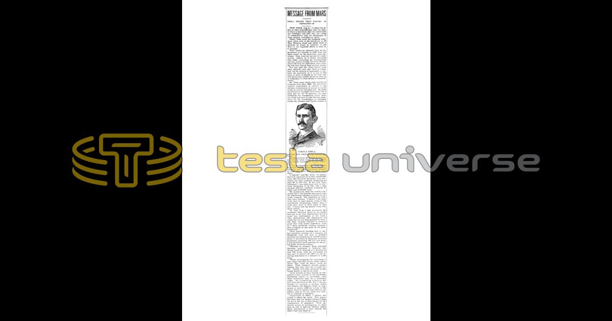 Nikola Tesla made the foregoing statement when seen in his laboratory at 48 East Houston street and asked about a machine he hopes to construct to aid Mars in her supposed efforts to send us a message.