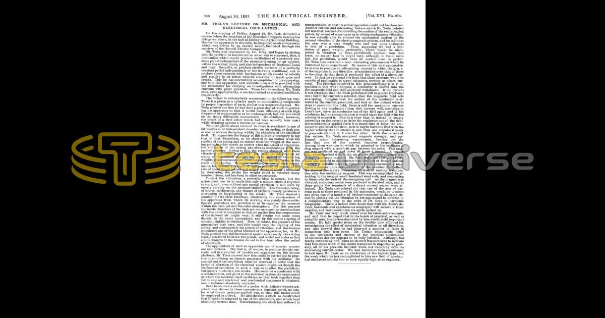 Mr. Tesla's Lecture on Mechanical and Electrical Oscillators