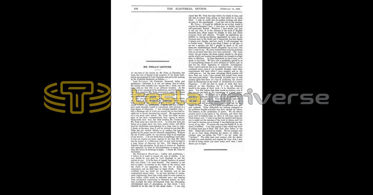 Mr. Tesla's Lecture at the Royal Institution