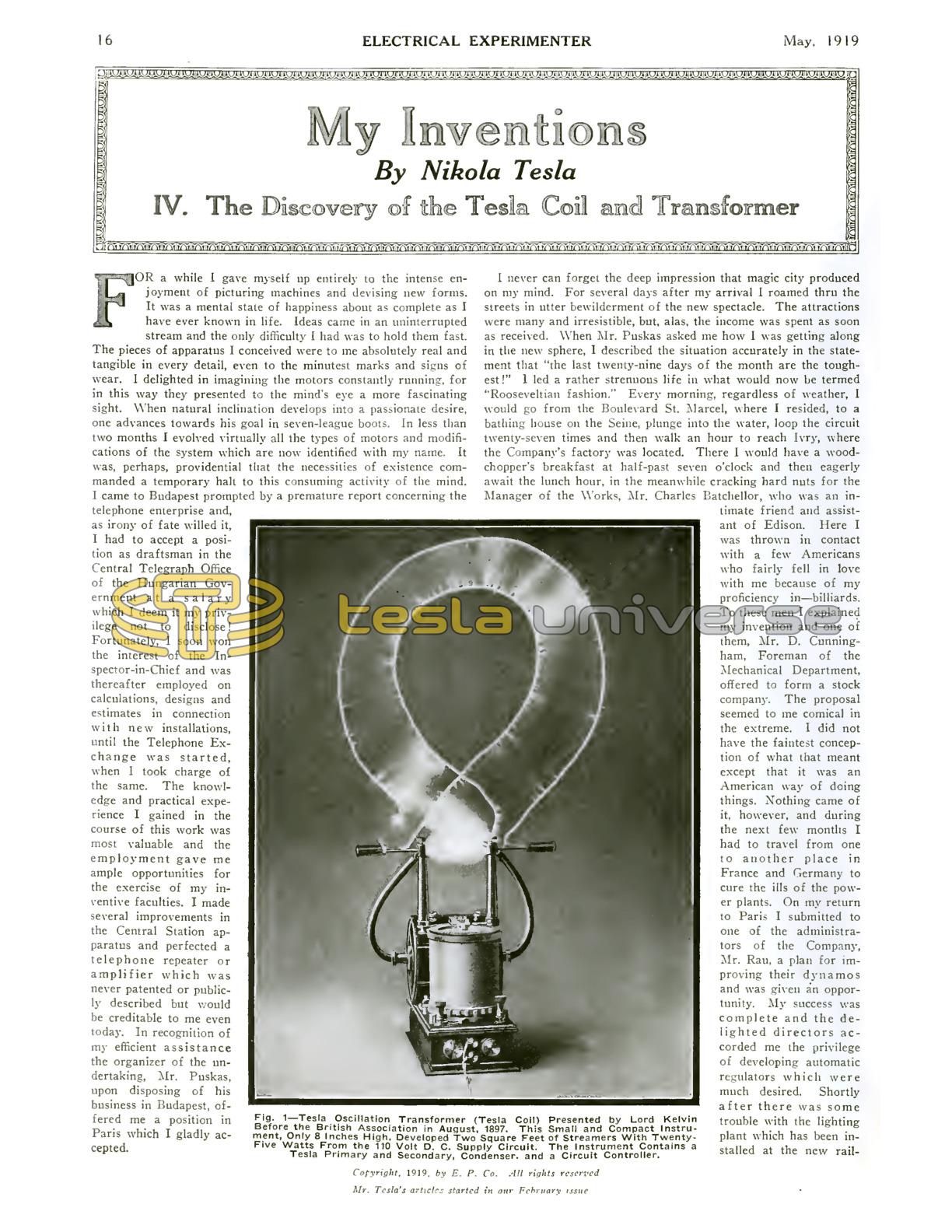 My Inventions IV - The Discovery of the Tesla Coil and Transformer