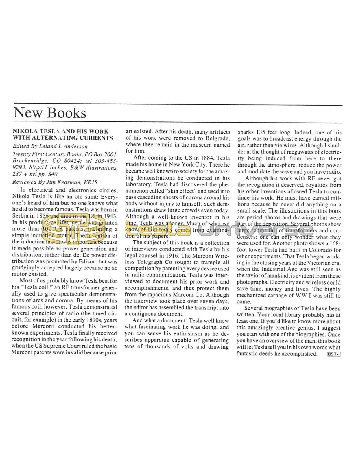 New Books - Nikola Tesla and His Work with Alternating Currents