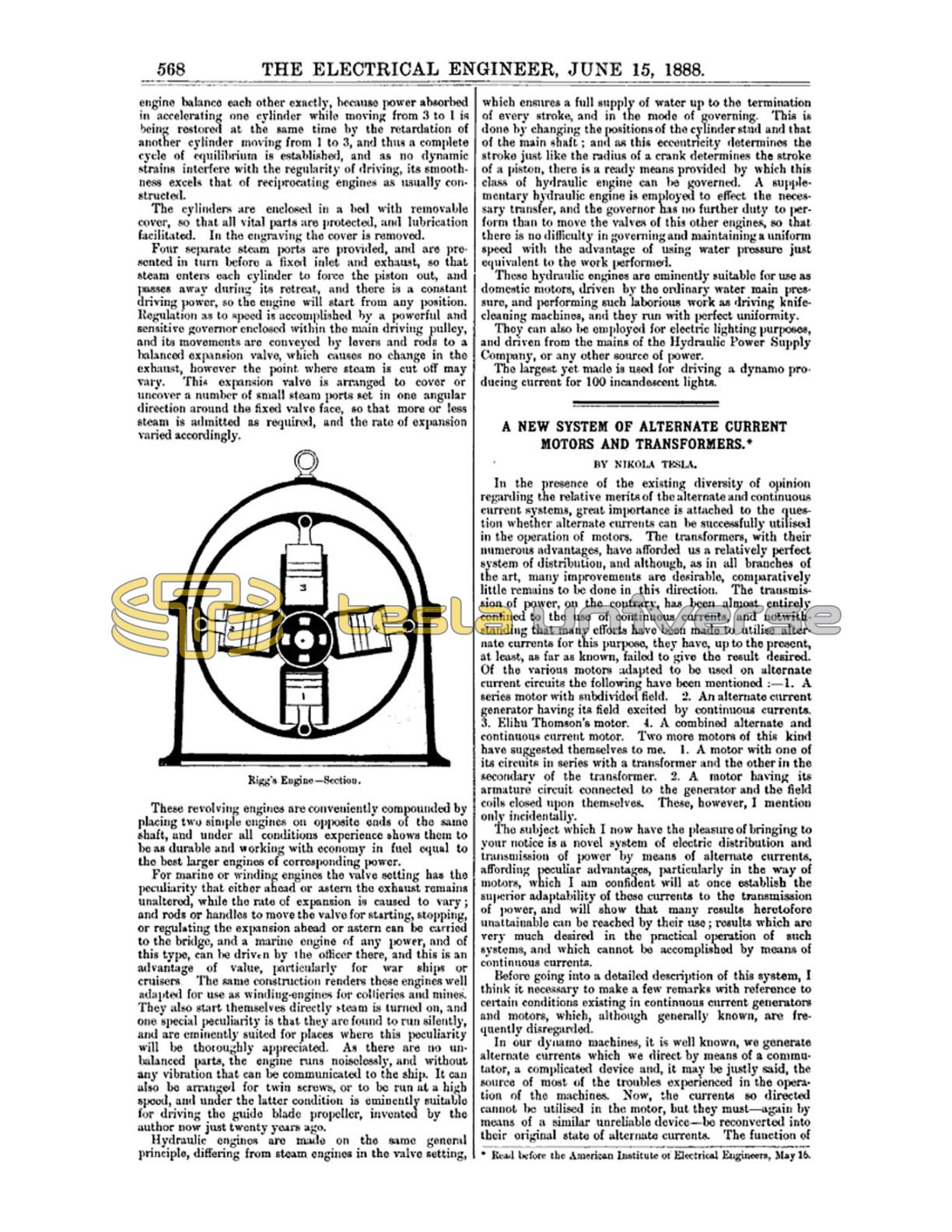 A New System of Alternate Current Motors and Transformers