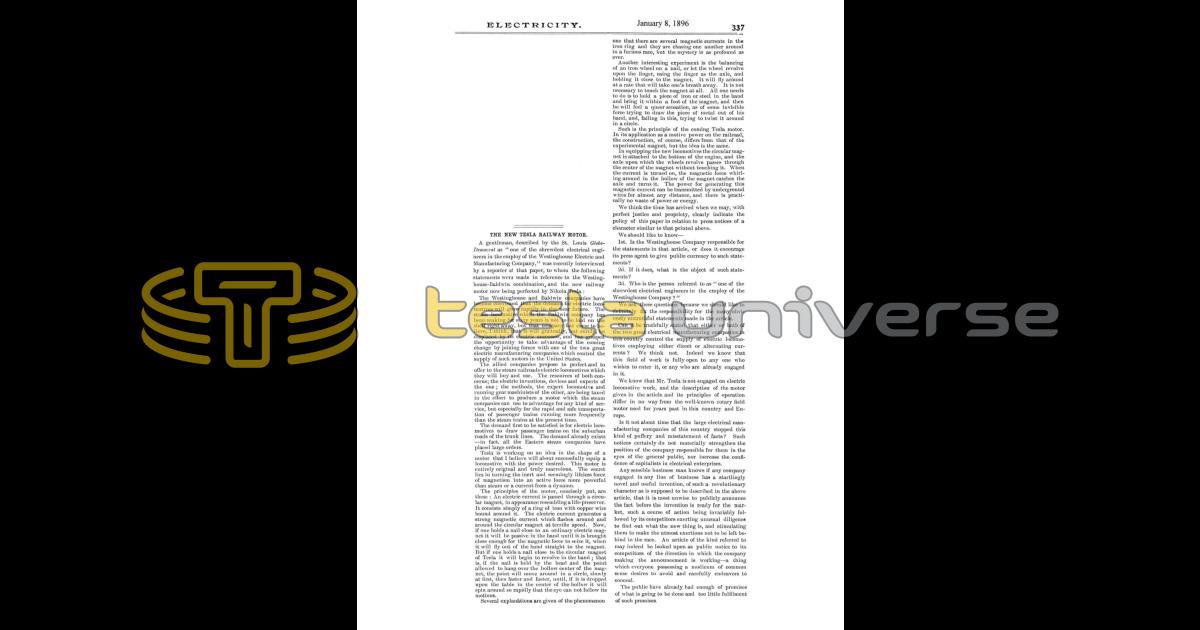 Tesla is working on an idea in the shape of a motor that I believe will about successfully equip a locomotive with the power desired. This motor is entirely original and truly marvelous. The secret lies in turning the inert and seemingly lifeless force of magnetism into an active force more powerful than steam or a current from a dynamo.