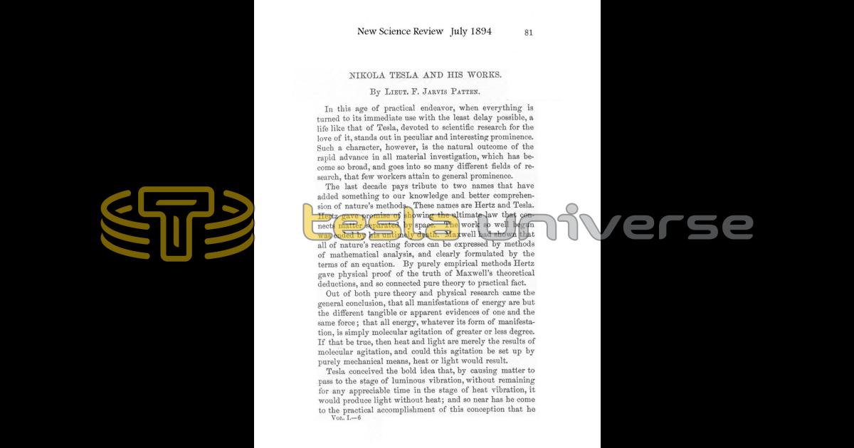 The last decade pays tribute to two names that have added something to our knowledge and better comprehension of nature's methods. These names are Hertz and Tesla. Hertz gave promise of showing the ultimate law that connects matter separated by space. The work so well begun was ended by his untimely death. Maxwell had shown that all of nature's reacting forces can be expressed by methods of mathematical analysis, and clearly formulated by the terms of an equation. By purely empirical methods Hertz gave physical proof of the truth of Maxwell's theoretical deductions, and so connected pure theory to practical fact.