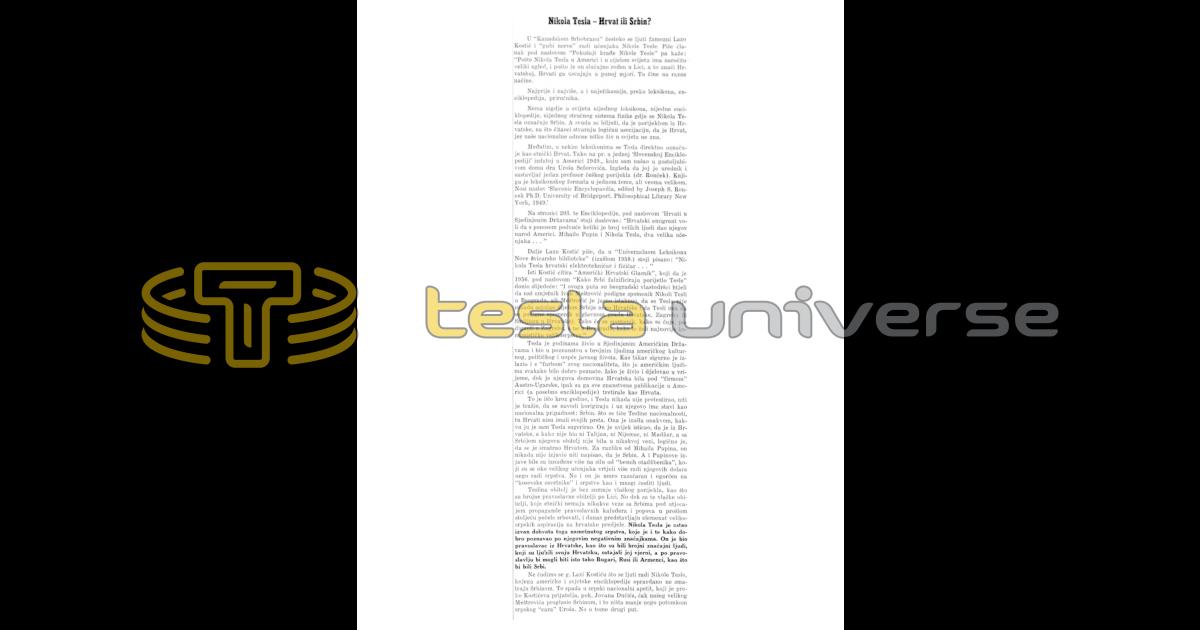 Further Lazo Kostić writes that in the “Universal Lexicon of the New Swiss Library” (edition 1958) it is written: “Nikola Tesla Croatian electrical engineer and physicist . . .”