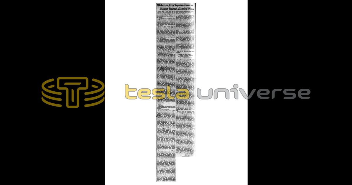 I feel that for a Jugoslav so great our Slovene papers have devoted comparatively little space to him and especially the English sections and I have picked this time to bring the name of great Tesla into these columns again.