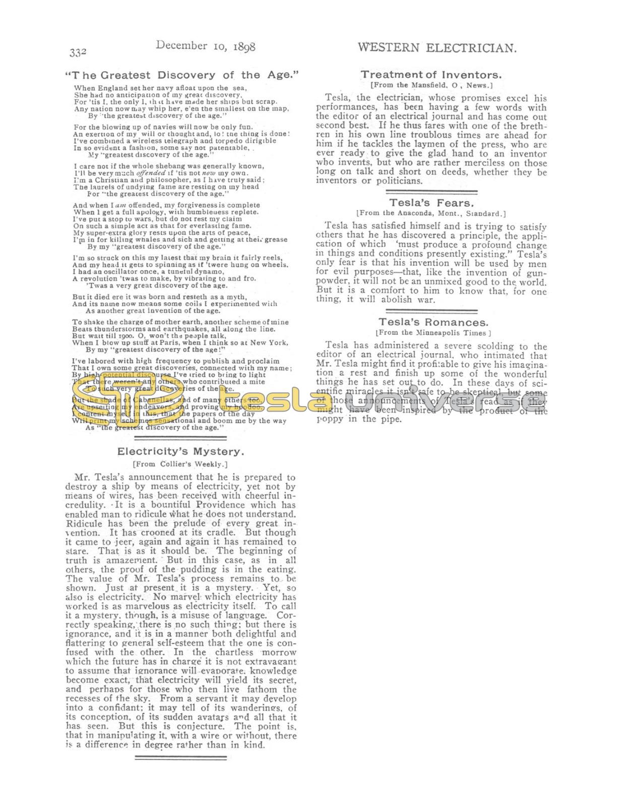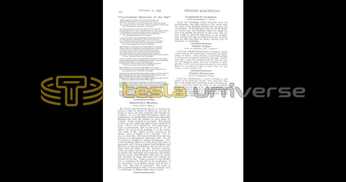 Nikola Tesla - "The Greatest Discovery of the Age" Poem & Recent News
