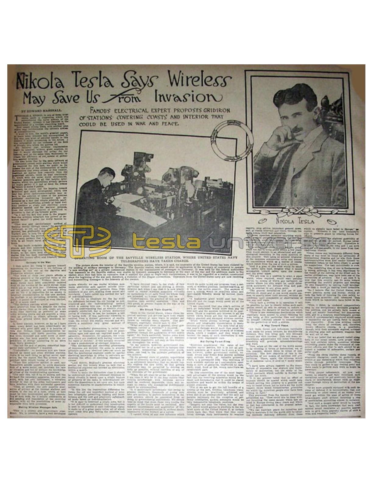 Nikola Tesla Says Wireless May Save Us From Invasion