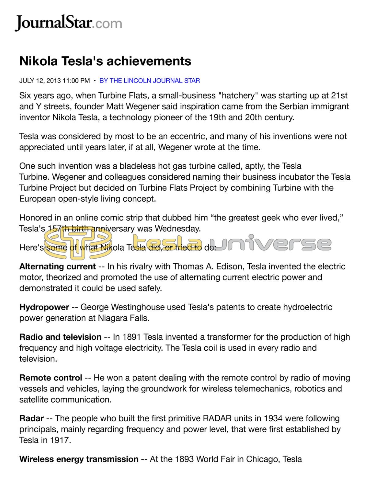 Tesla was considered by most to be an eccentric, and many of his inventions were not appreciated until years later, if at all, Wegener wrote at the time.