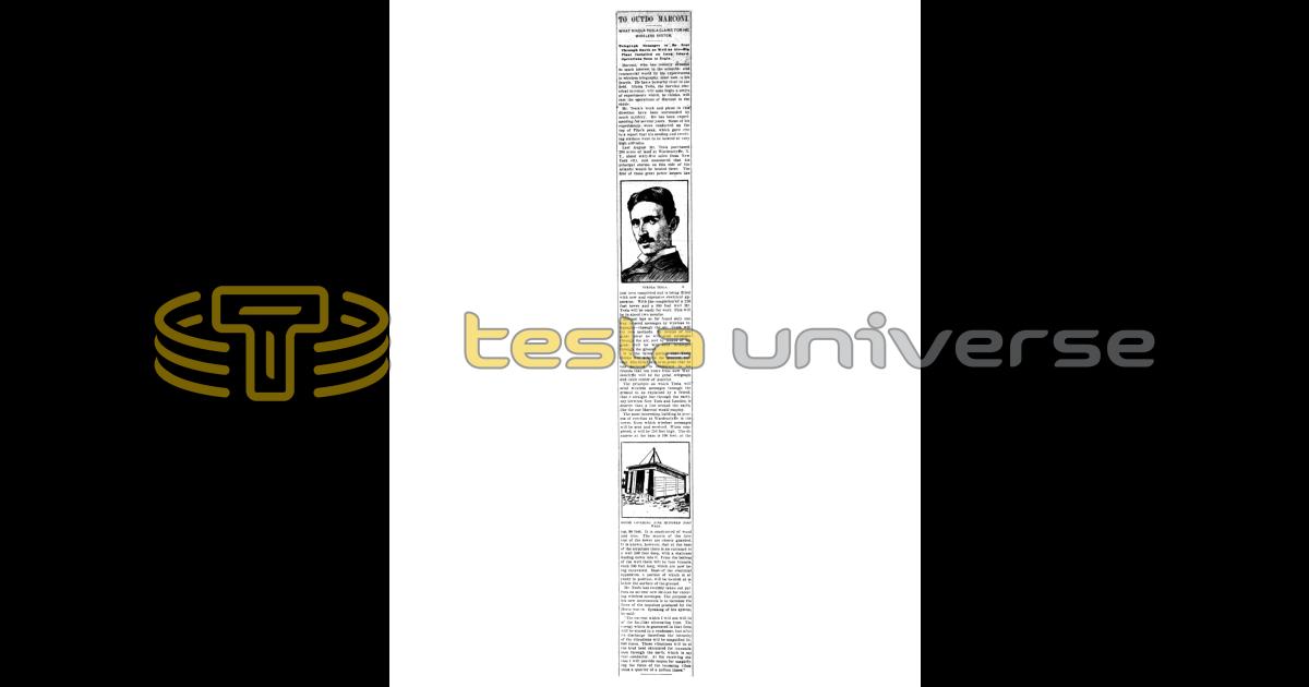 The principle on which Tesla will send wireless messages through the ground is, as explained by a friend, that a straight line through the earth, say between New York and London, is shorter than a line around the earth, like the one Marconi would employ.