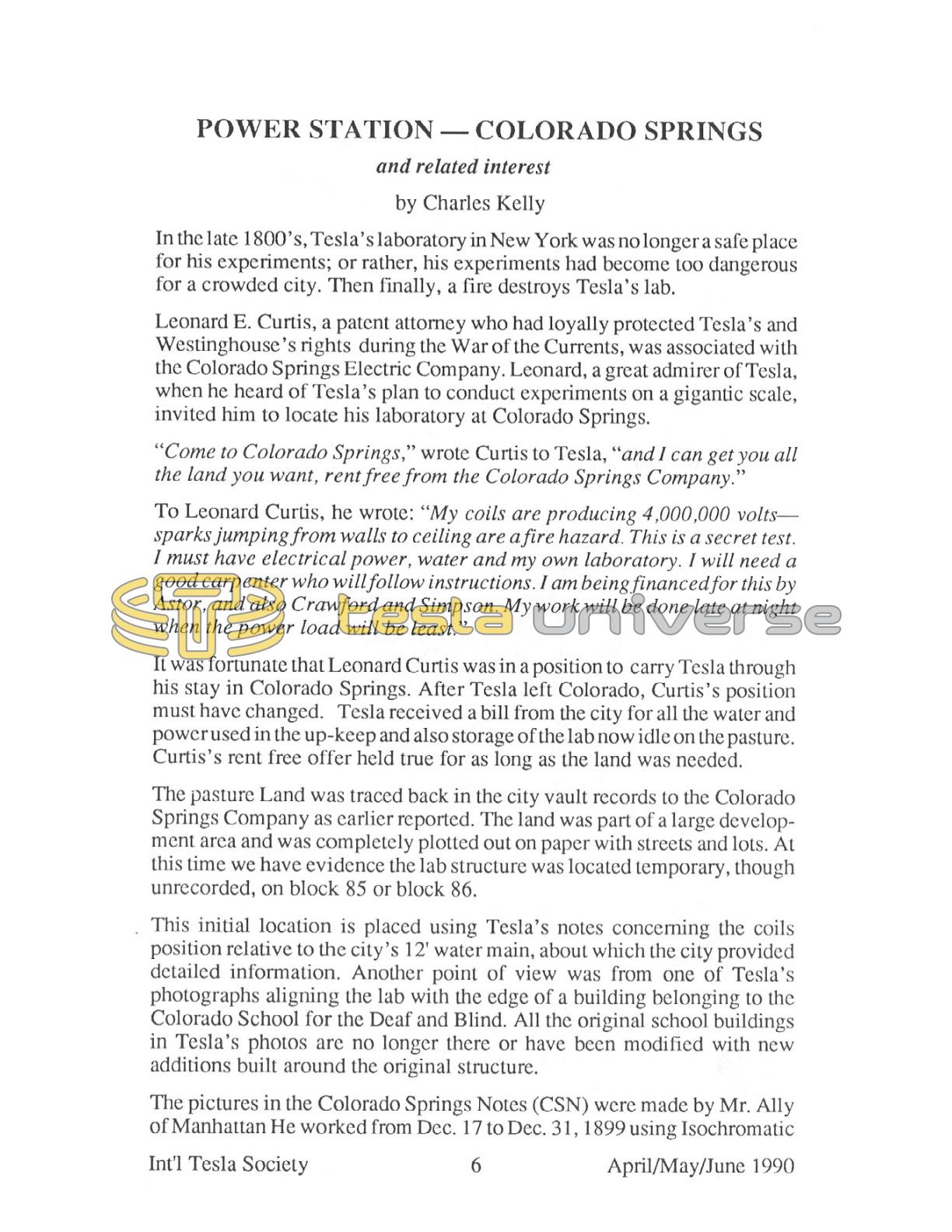 "Come to Colorado Springs," wrote Curtis to Tesla, "and I can get you all the land you want, rent-free from the Colorado Springs Company."