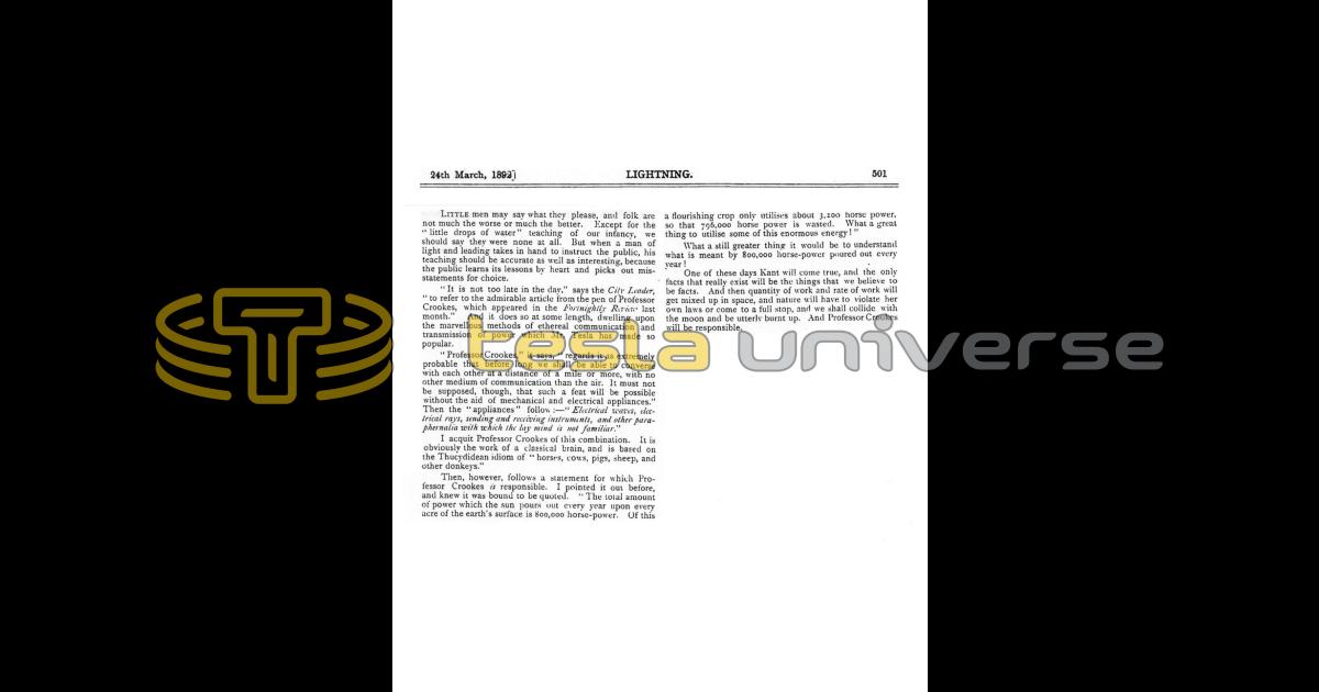 Prof. Crookes on Tesla's Ethereal Communication and Transmission of Power