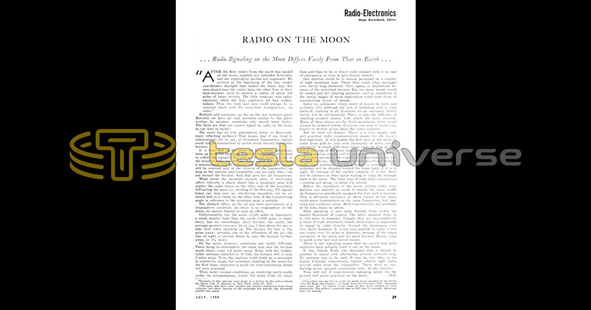 Rubbish and nonsense — as far as the last sentence goes! Recently we have all read accounts similar to the above written by amateur scientists, who should know better. The facts are that one cannot signal by radio on the moon as one does on earth.*