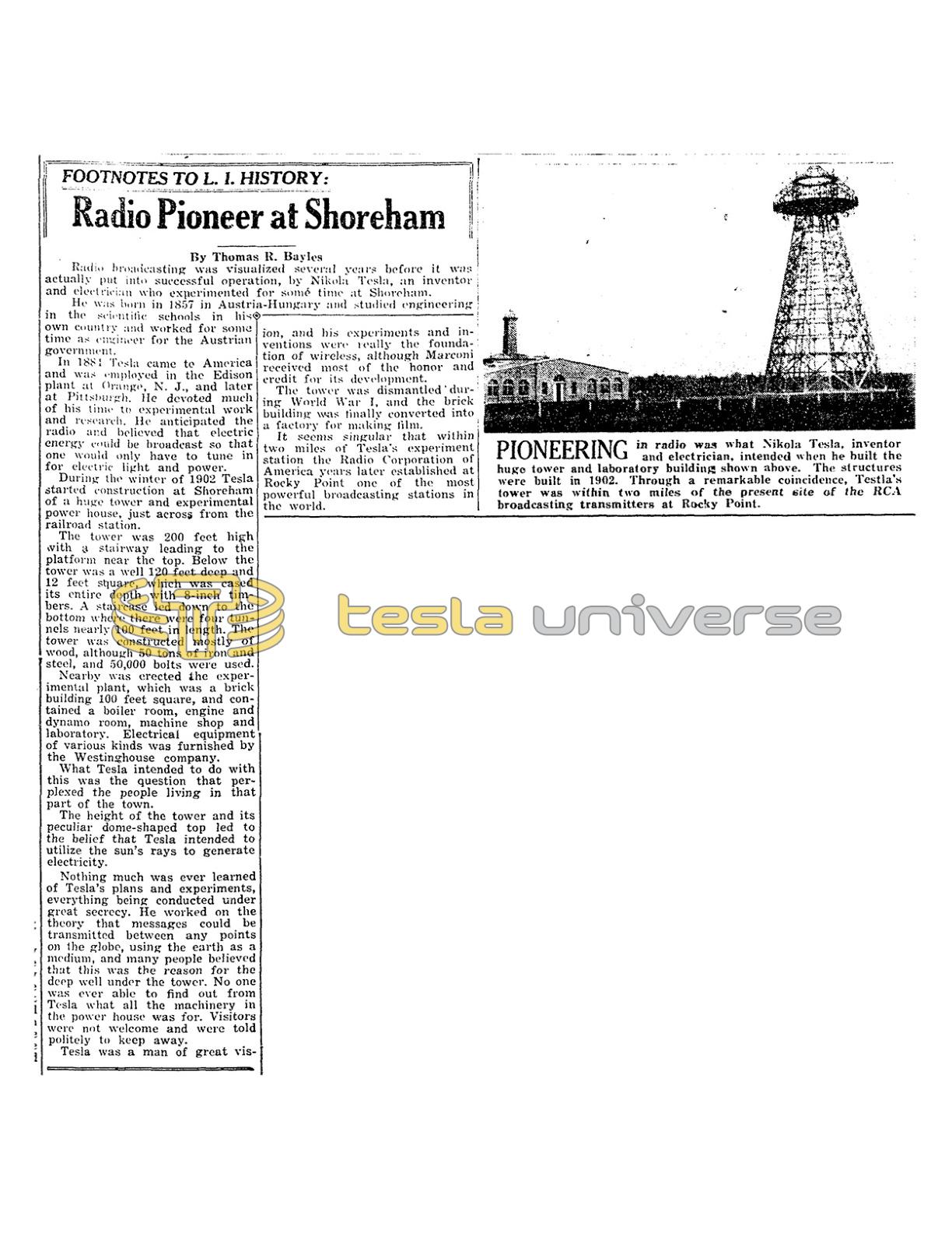Radio broadcasting was visualized several years before it was actually put into successful operation, by Nikola Tesla, an inventor and electrician who experimented for some time at Shoreham.