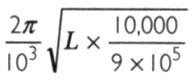 L = 9 x 105/4 = 225,000 cm. Calculated it would appear that the supports L would have to be about 600 feet. The arrangement would be OK with quick oscillation. The self induction of a straight conductor is L' = 2l'[loge (2l'/r) - 0.75]. Now, take l' = 300 ft = 9000 cm. If we want to use iron pipes 4" diam. r = 5 cm. Then 2l'/r = 3600 and from this I find L' = 134,000 cm. Again taking the length 600 ft we would get inductance probably 268,000 cm. To get lower frequencies, evidently in above scheme self-induction must be increased.