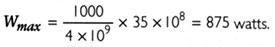 emax = 875 x 4 x 103/π = 11 x 105 volt. Assuming magnifying factor in receiving circuit = 100 we may get with a tuned circuit er = 11 x 107 volt, ir = π/40 amp and Wr = 11π x 107/40 = 86 x 105 watts. Perfectly wonderful!