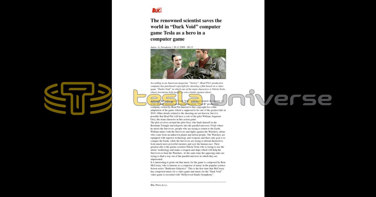 The Renowned Scientist Saves the World in “Dark Void” Computer Game Tesla as a Hero in a Computer Game