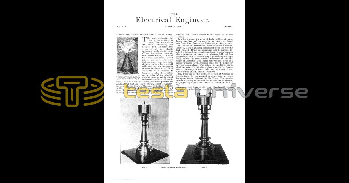 The recent destruction by fire of the building in New York City in which Mr. Tesla's laboratory was situated, and the consequent wreck of all his valuable apparatus, lends special value to the illustrations herewith, never before shown, of a number of Tesla oscillators. It will interest our readers to know that the engravings were made about a year ago, but were laid aside awaiting the completion of other and later work, all of which Mr. Tesla proposed to bring in rounded shape before one or other of the scientific societies, accompanied by actual demonstrations with the machinery. Fate has willed otherwise, and these pictures are practically all that can now be shown, except the engraving secured by the Century Magazine of the latest "double oscillator" and printed by that publication in its April issue. In view of the fire, it becomes proper and desirable to bring these machines to general notice, and we have obtained Mr. Tesla's consent to our doing so at this juncture.