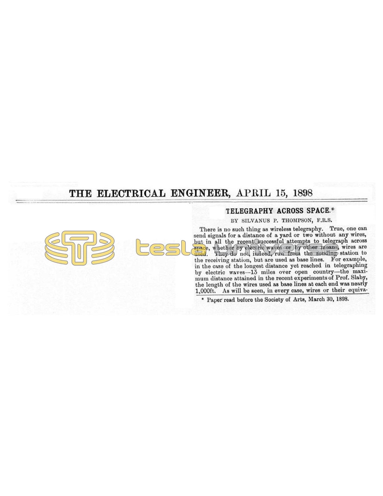 There is no such thing as wireless telegraphy. True, one can send signals for a distance of a yard or two without any wires, but in all the recent successful attempts to telegraph across space, whether by electric waves or by other means, wires are used. They do not, indeed, run from the sending station to the receiving station, but are used as base lines. For example, in the case of the longest distance yet reached in telegraphing by electric waves - 13 miles over open country - the maximum distance attained in the recent experiments of Prof. Slaby, the length of the wires used as base lines at each end was nearly 1,000ft. As will be seen, in every case, wires or their equivalent are used to serve either as base lines or as base areas in the transmission.