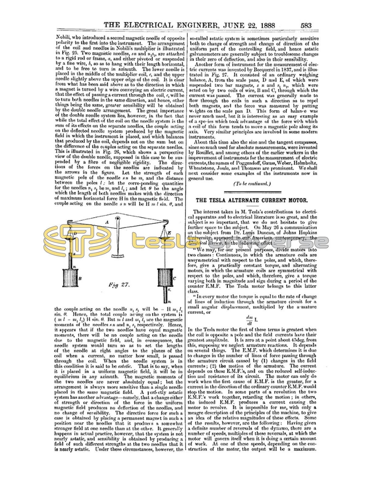 The interest taken in M. Tesla’s contributions to electrical apparatus and to electrical literature is so great, and the subject is so important, that we do not hesitate to give further space to the subject. On May 26 a communication on the subject from Dr. Louis Duncan, of Johns Hopkins University, appeared in our American contemporary, the Electrical Review, to the effect: