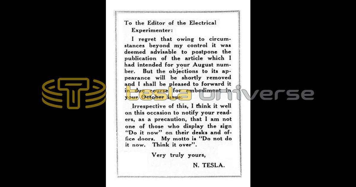Very truly yours, N. TESLA.