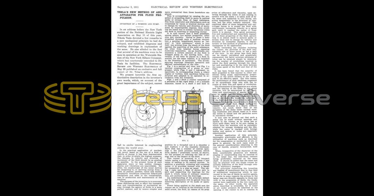 Tesla's New Method of and Apparatus for Fluid Propulsion