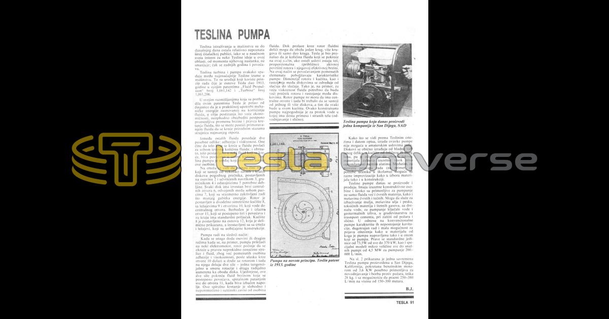 Tesla's research in mechanical engineering has remained relatively unknown to the wider reading public to this day, although in the scientific world interest in certain of Tesla's ideas in this field has not diminished from the moment of their inception; in fact it has even increased in recent years.