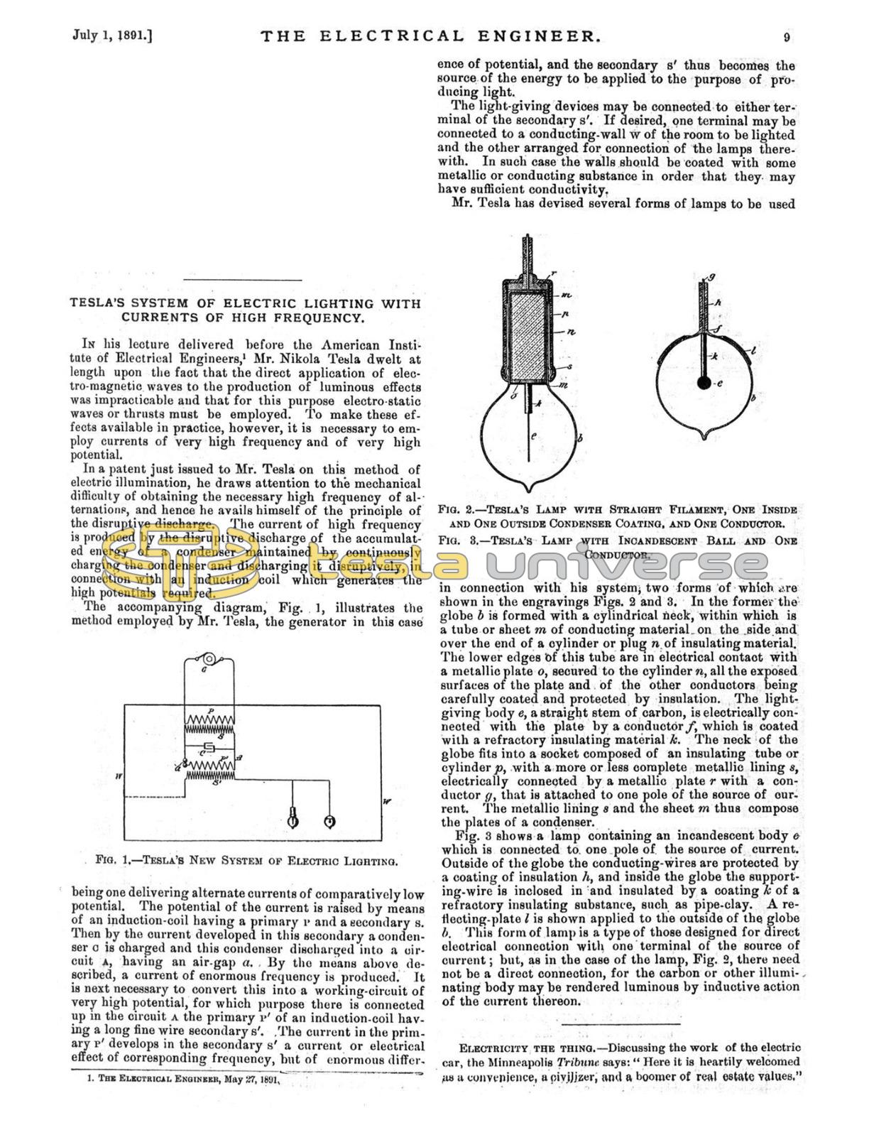 Tesla's System of Electric Lighting with Currents of High Frequency
