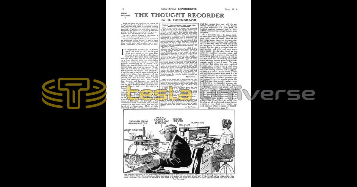 When the writer first conceived the idea of the thought recorder, he asked three prominent scientists regarding their views on recording thoughts electrically. The letters are reproduced herewith excerpted. It will be noted that Nikola Tesla disagrees with the writer as to thought transmission at all, but his letter nevertheless will give considerable food for thought to many readers.