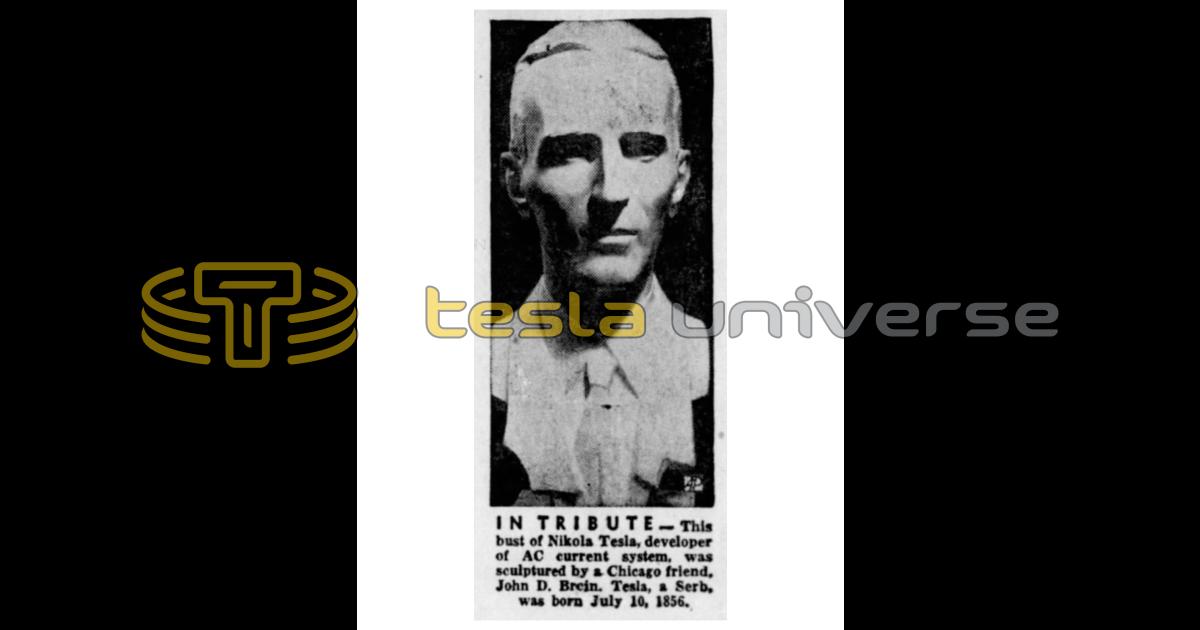 Nikola Tesla Articles Newspaper and magazine articles related to Nikola Tesla In Tribute - Bust of Nikola Tesla by John D. Brein St. Cloud Times July 2nd, 1956 Page number(s): 8 This bust of Nikola Tesla, developer of AC current system, was sculptured by a Chicago friend, John D. Brein. Tesla, a Serb, I was born July 10, 1856. Downloads Downloads for this article are available to members.Log in or join today to access all content. Downloads Downloads for this article are available to members.Log in or join today to access all content. Pagination Enjoy other articles First First item Previous Previous item Next Next item Last Last item Within the Universe Timeline Important moments and events related to Tesla. Articles Nikola Tesla in the press. Books Books written by and about Nikola Tesla. Documents Nikola Tesla documents, files and papers. Quotes Profound and insightful quotes by Nikola Tesla. Movies and TV Nikola Tesla on the screen. Patents Nikola Tesla held around 200 patents worldwide. Landmarks Locations related to Nikola Tesla. Images Nikola Tesla image and photo library. Show more Pagination Enjoy other articles First First item Previous Previous item Next Next item Last Last item Within the Universe Documents Nikola Tesla documents, files and papers. Quotes Profound and insightful quotes by Nikola Tesla. Books Books written by and about Nikola Tesla. Timeline Important moments and events related to Tesla. Patents Nikola Tesla held around 200 patents worldwide. Images Nikola Tesla image and photo library. Landmarks Locations related to Nikola Tesla. Letters Letters to, from and about Nikola Tesla. Movies and TV Nikola Tesla on the screen.