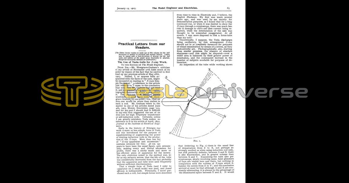 DEAR SIR, — Mr. Howgrave-Graham's criticism of my article of November 17th loses much of its point by reason of the fact that he omitted to first read up my previous article of May 28th, 1903. Indeed, I, or anyone fully acquainted with the facts of the case, might be excused if on reading in "X-rays Simply Explained" a reference to the article just referred to, I came to the conclusion that even then Mr. Graham had not read it, and consequently had not seen the photographic illustration which accompanied it. The criticism thus becomes purely academic. I quite agree with Mr. Howgrave Graham on one point — viz., that an iron core would be worse than useless in such a coil. Mr. Graham refers to the matter in one of his articles dated June 4th, 1903, Model Engineer, page 533, and for my part I should find it difficult to say who first suggested the use of an iron core for high frequency transformer or self-induction coils. Certainly, unless I am greatly mistaken, Tesla makes no reference to it in his article of April, 1892, Journal of the Institute of Electrical Engineers.