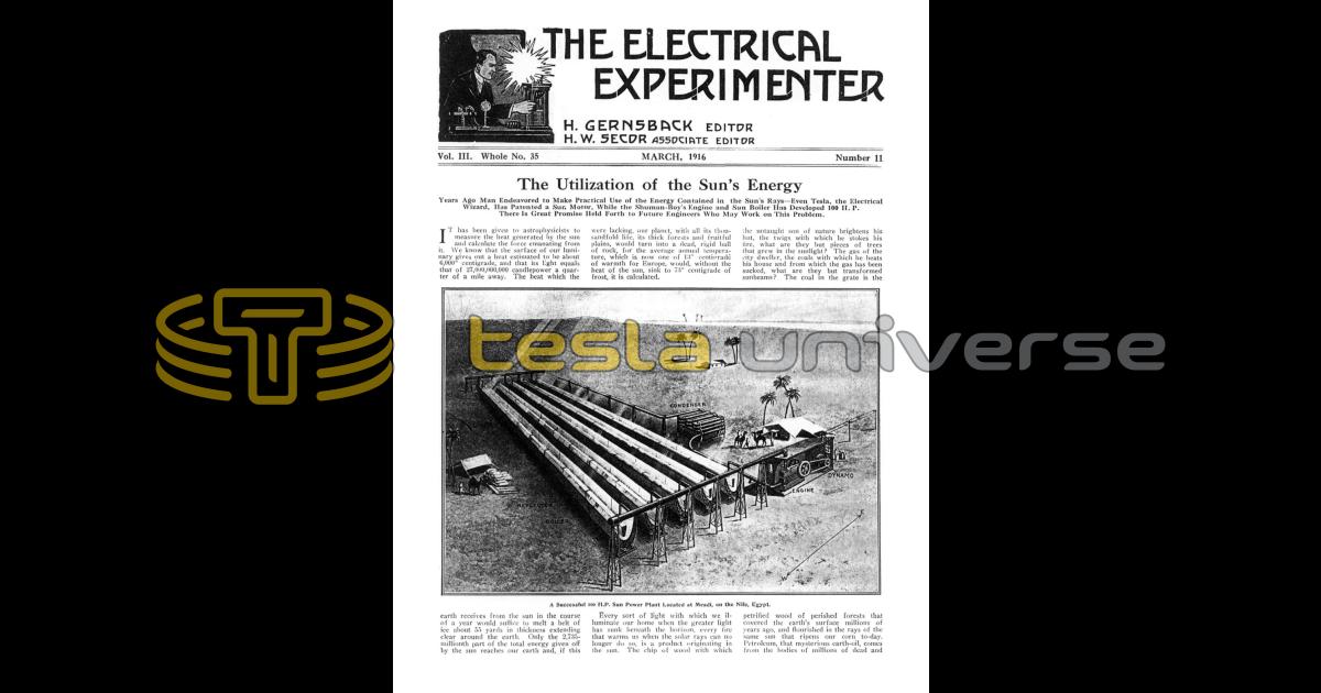 Years Ago Man Endeavored to Make Practical Use of the Energy Contained in the Sun's Rays — Even Tesla, the Electrical Wizard, Has Patented a Sun Motor, While the Shuman-Boy's Engine and Sun Boiler Has Developed 100 H. P. There Is Great Promise Held Forth to Future Engineers Who May Work on This Problem.