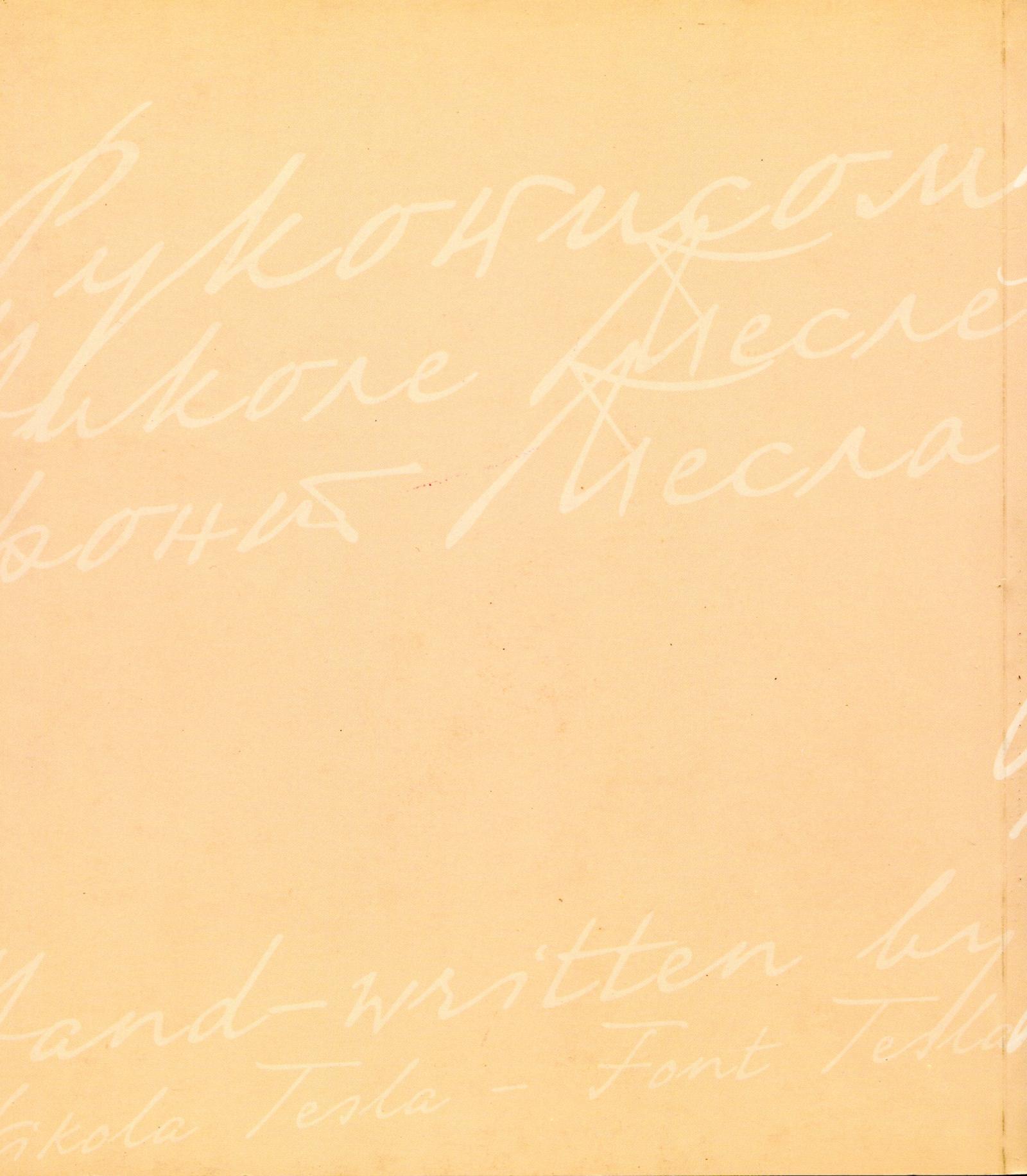 Nikola Tesla Books Books written by or about Nikola Tesla Handwritten by Nikola Tesla - Tesla Font Details Category: Reference Date published: 2006 Publisher: Nikola Tesla Museum Format: Softcover Dimensions: 9 x 8 x 0.25 inches Page count: 34 ISBN-10: 86-81243-28-4 Pagination Enjoy other books First First item Previous Previous item Next Next item Last Last item Within the Universe Documents Nikola Tesla documents, files and papers. Quotes Profound and insightful quotes by Nikola Tesla. Patents Nikola Tesla held around 200 patents worldwide. Timeline Important moments and events related to Tesla. Articles Nikola Tesla in the press. Images Nikola Tesla image and photo library. Landmarks Locations related to Nikola Tesla. Letters Letters to, from and about Nikola Tesla. Movies and TV Nikola Tesla on the screen.