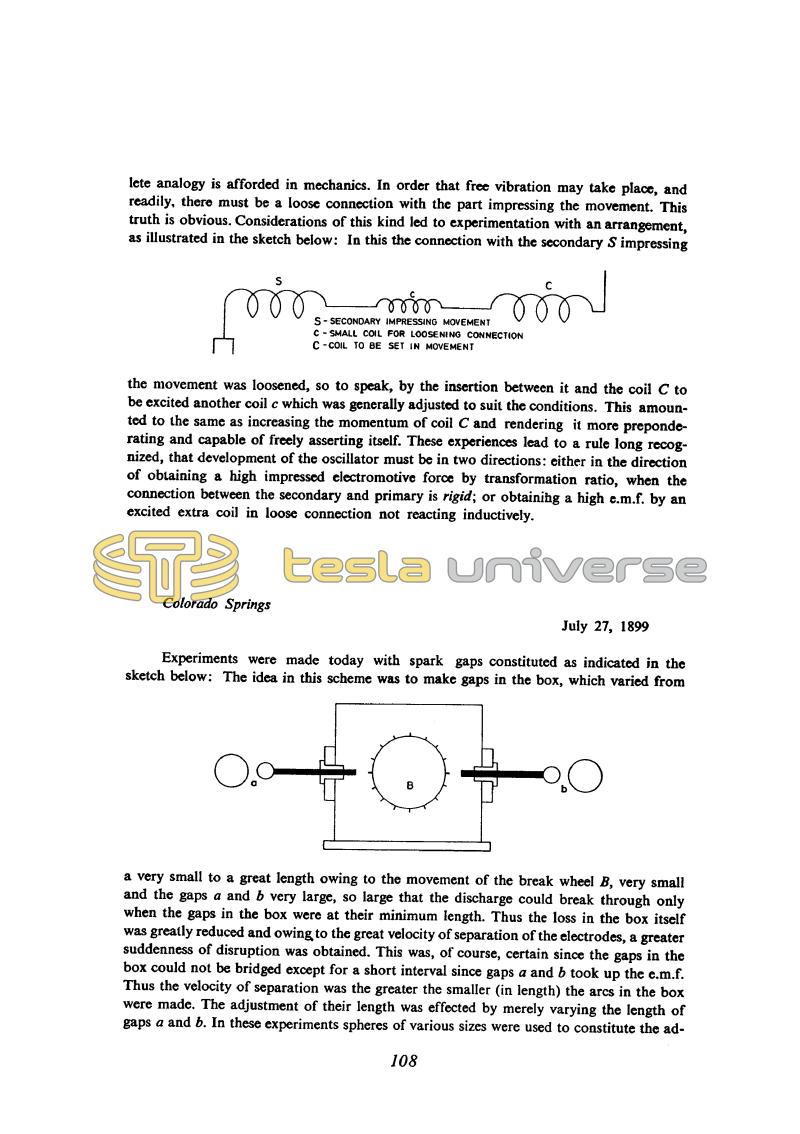 Tesla considers the same questions as on June 30, and he repeats them in greater detail now. The influence of a link between the primary and secondary of the oscillator high frequency transformer he considered on July 8.