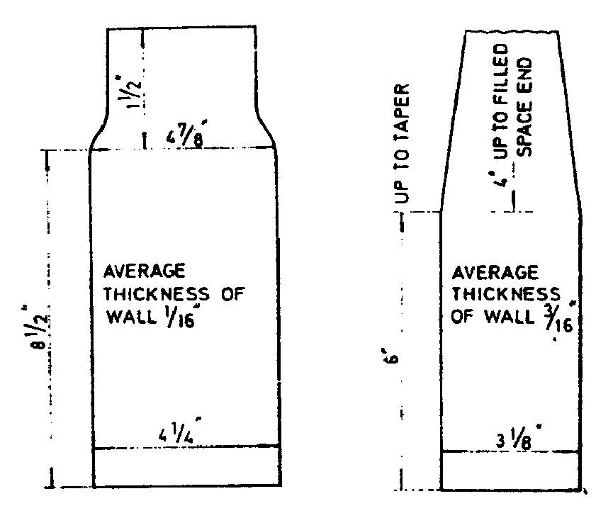 Now mean diam. of cylindrical part of old jar outside = 4.5625". Now mean diam. of cylindrical new bottle jar outside = 3.125". Allowance for upper part on old jar 1 1/2" taken of same diam. as cylindrical or nearly cylindrical part.