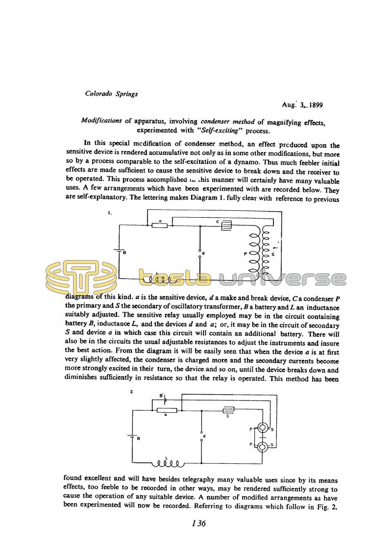 Modifications of apparatus, involving condenser method of magnifying effects, experimented with "Self-exciting" process.